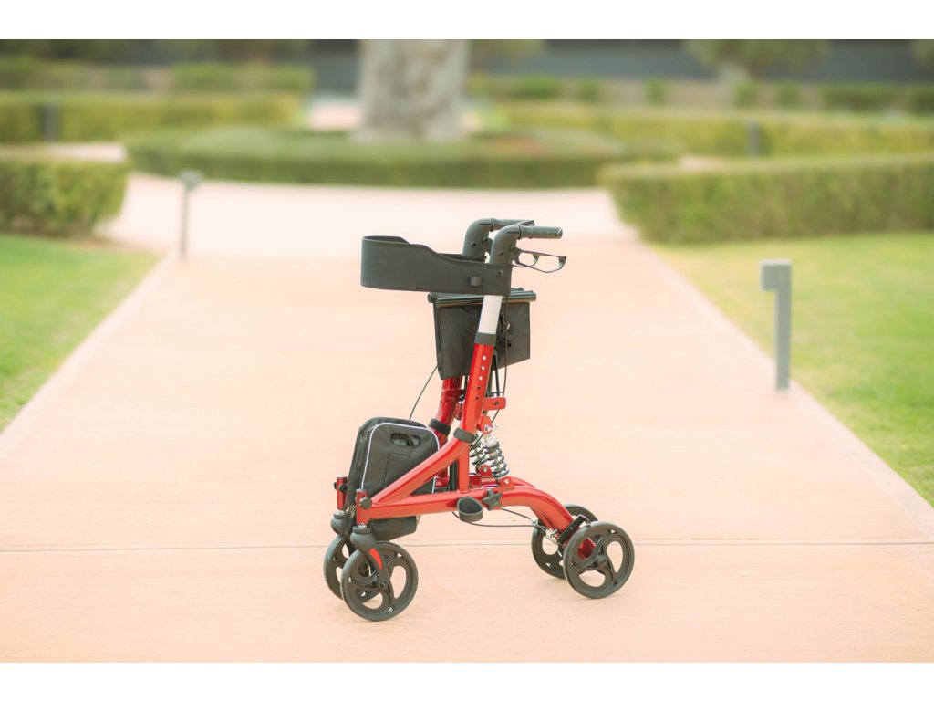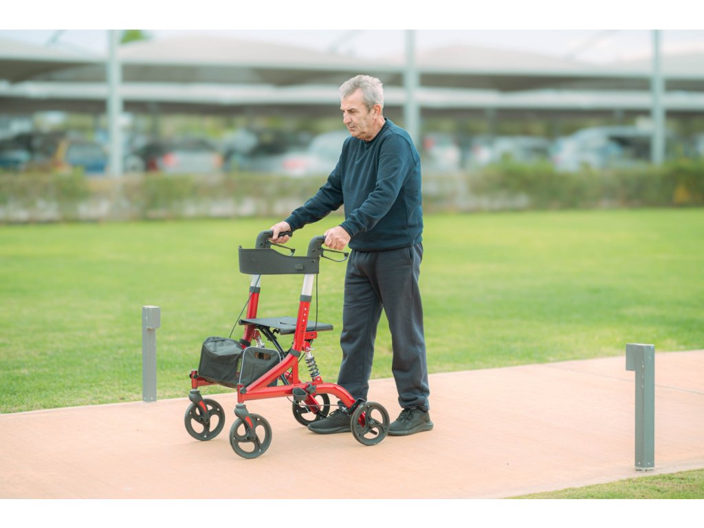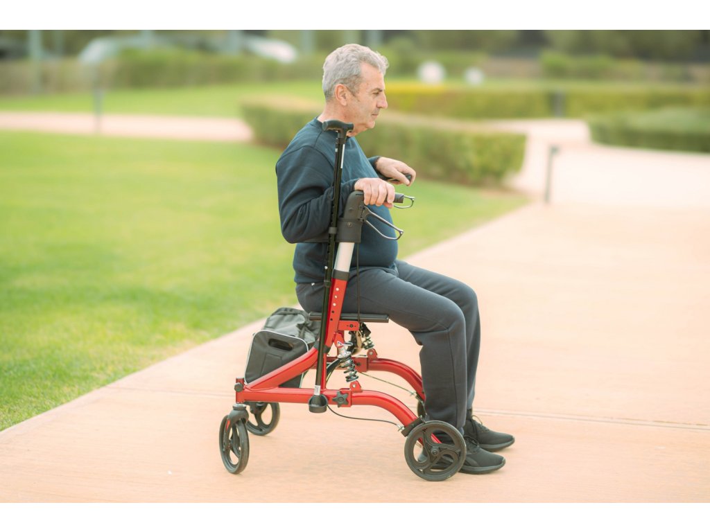 Ideální pro uživatele, kteří se samostatně pohybují mimo domov a potřebují spolehlivou podporu. Součástí vybavení je sedátko, držák na hůl a praktická brašna pro přenášení věcí.