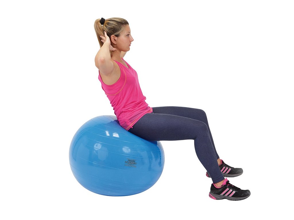 Při výběru správné velikosti velkého míče dbejte na to, aby hýždě byly o trochu výše než kolena. Správná velikost velkého míče se určuje podle výšky postavy nebo délky paže, měřeno od ramenního kloubu ke konečkům prstů.