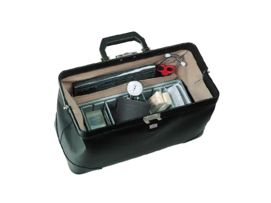 Lékařský kufřík o rozměrech 45 x 20 x 22 cm.