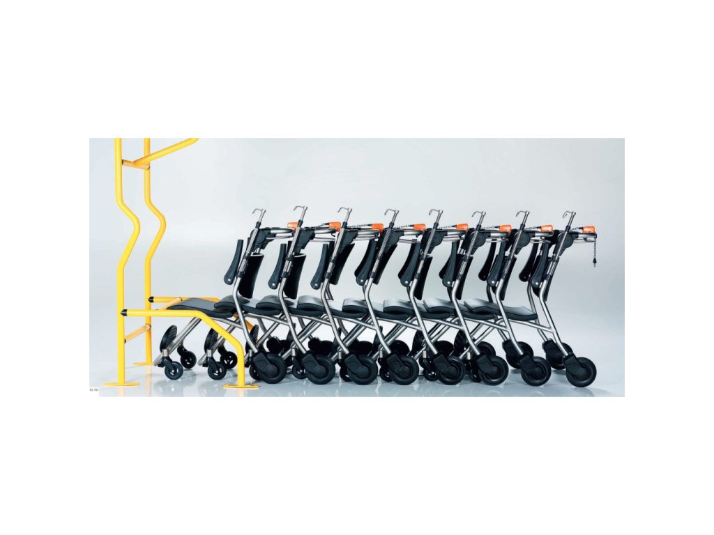 Úspora prostoru: Vozíky lze snadno seřadit do kompaktní řady, což minimalizuje nároky na skladovací plochu.