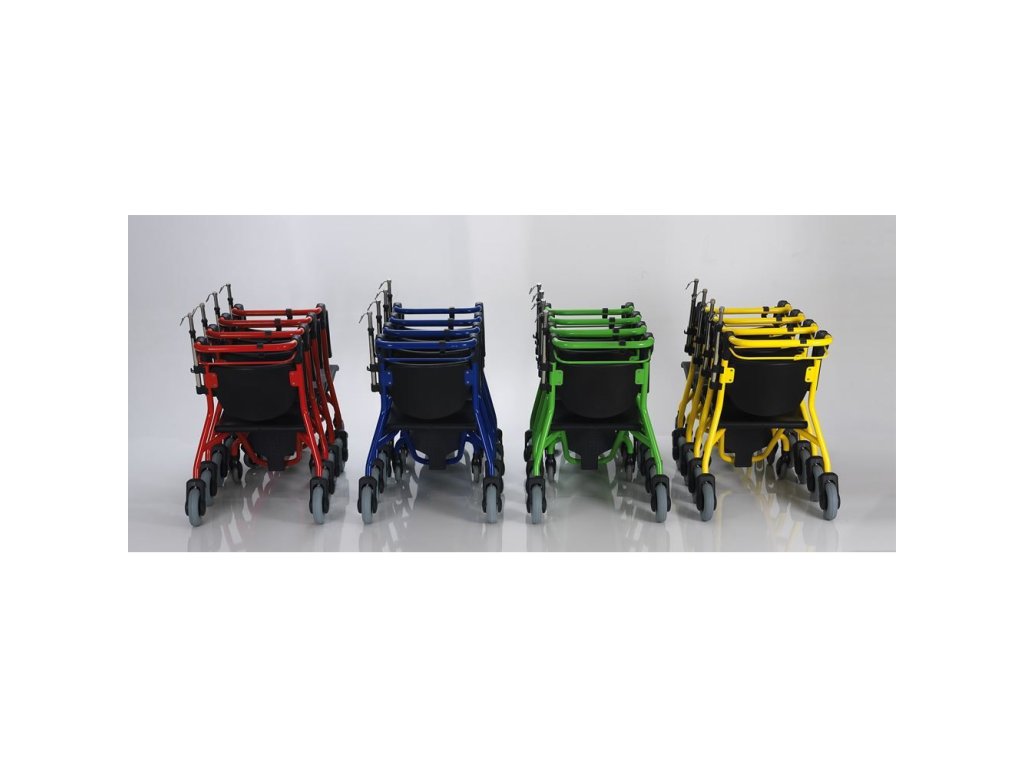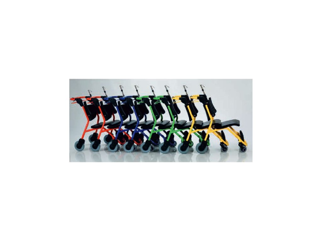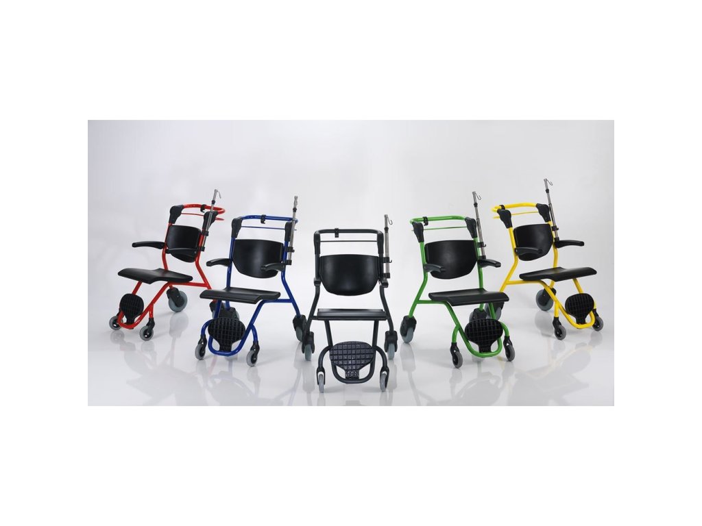 Odolná a jednoduchá konstrukce rámu vozíku, stejně tak jako pevná gumoplastová sedačka a zádová opěrka, zaručují dlouhou životnost s minimalizací možného poškození klienty. Celou konstrukci rámu i sedák lze desinfikovat běžnými desinfekčními prostředky. Vozíky lze parkovat seřazené do sebe (stejně jako nákupní vozíky v supermarketu) a tím minimalizovat prostor potřebný ke skladování neupotřebených kusů. Na přání lze doplnit zámkem na mince. Můžeme Vám také nabídnou dokovací stanici. Při objednání lze vybírat z pěti barevností a je také možné dodat v barevnosti na zakázku. Nosnost vozíku je 120 kg.