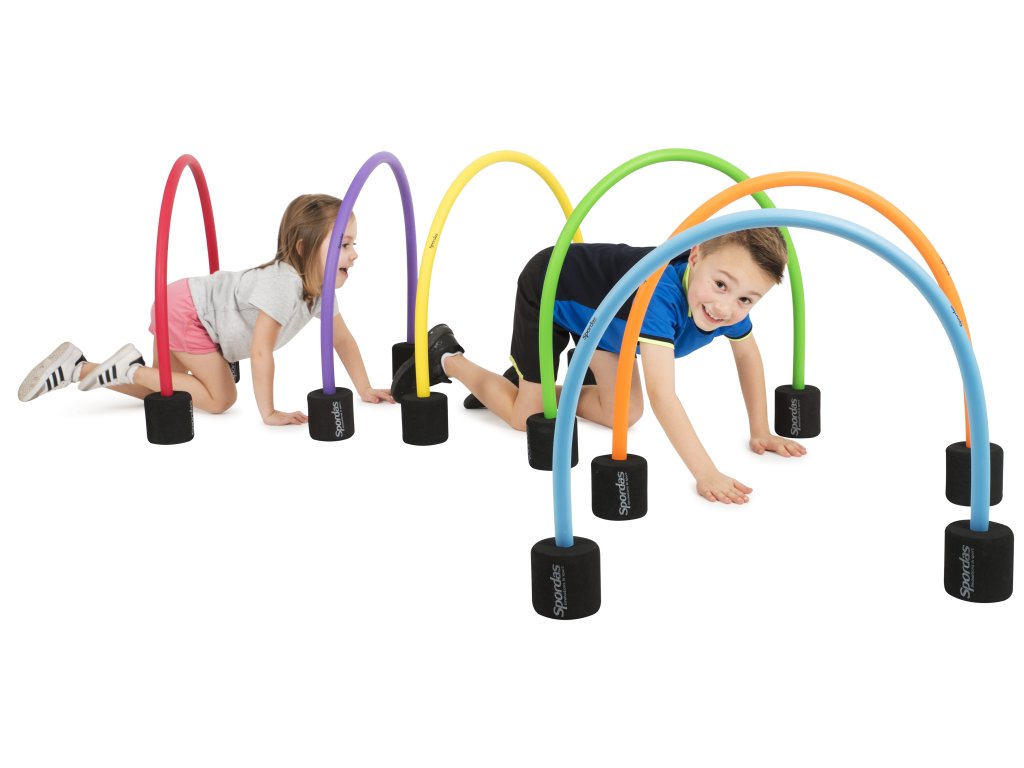 Podpořte pohybový rozvoj dětí hravou a bezpečnou formou. Pěnové prolézací branky od značky Spordas jsou ideální pomůckou pro školky, školy, sportovní kluby i domácí využití. Díky lehkému a odolnému materiálu Ultrafoam jsou branky příjemné na dotek, snadno manipulovatelné a přitom dostatečně stabilní pro každodenní použití. Tato sada šesti barevných prolézaček je navržena tak, aby podporovala motoriku, koordinaci a prostorové vnímání dětí.