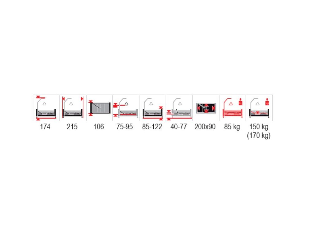 - Rozměry lůžka: 90 × 200 cm (ložná plocha).