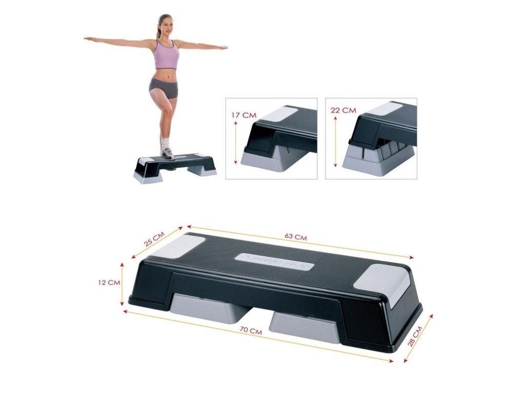 Kvalitní step na aerobic, který je vhodný pro začátečníky, školy nebo cvičení doma. Nabízí odolnou, stabilní konstrukci a možnost nastavení 3 různých výškových úrovní (12 cm, 17 cm a 22 cm) pro nastavení obtížnosti. Sestavy se stepem jsou založeny na krocích nahoru a dolů - překonávání výškového rozdílu mezi stepem a podlahou.